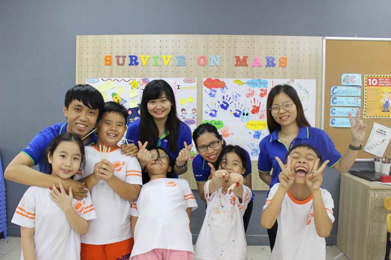 Các em và thầy cô chụp ảnh lưu niệm tại Trại hè sáng chế – Innovation Camp