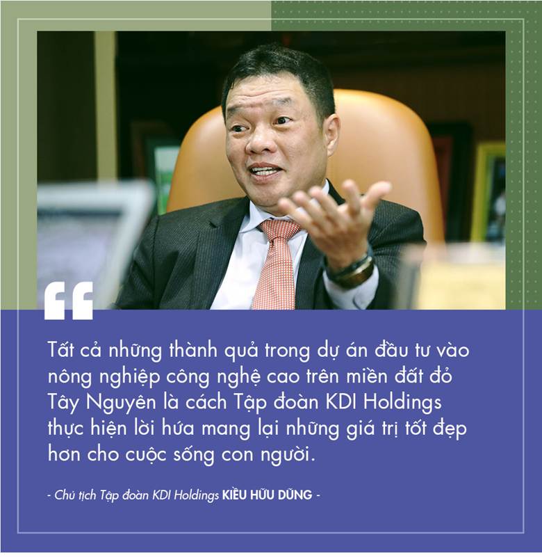 Nhiều gia đình công nhân KDA đã có cuộc sống ổn định với nhà cửa khang trang, có tiền cho con trẻ ăn học. “Tất cả những thành quả trong dự án đầu tư vào nông nghiệp công nghệ cao trên miền đất đỏ Tây Nguyên là cách Tập đoàn KDI Holdings thực hiện lời hứa mang lại những giá trị tốt đẹp hơn cho cuộc sống con người. Chúng tôi còn nhiều dự định cho vùng đất này”, Chủ tịch Tập đoàn KDI Holdings Kiều Hữu Dũng nói.